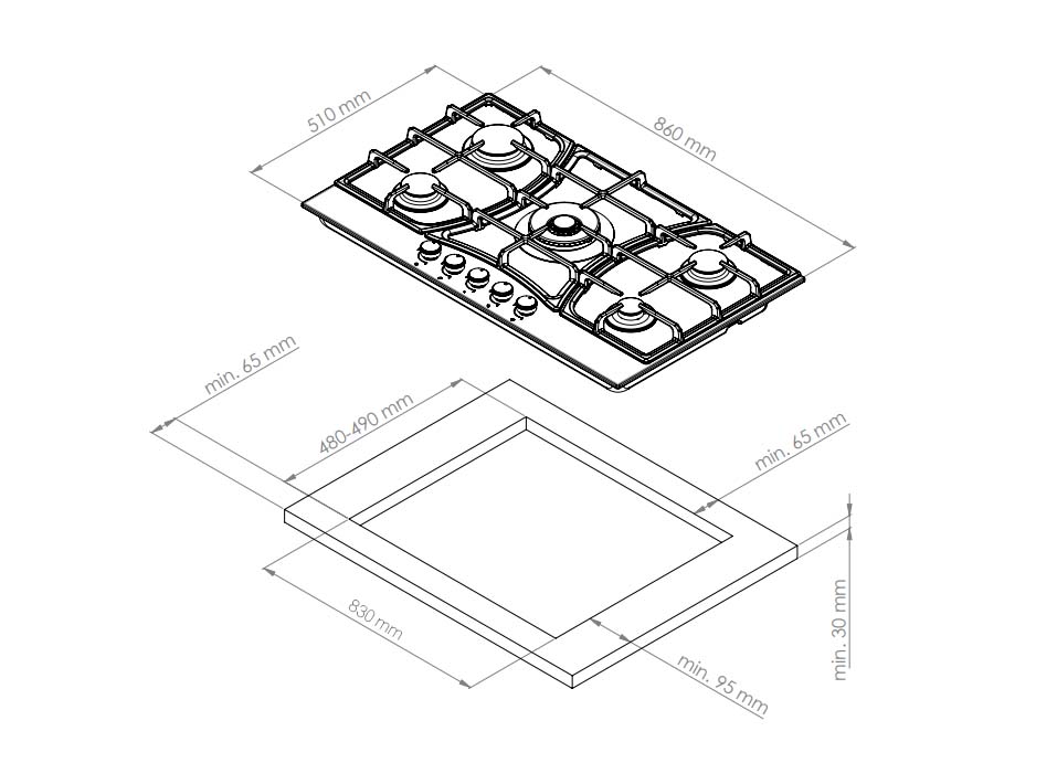 • Recess size for embedding (WхD) 830х490