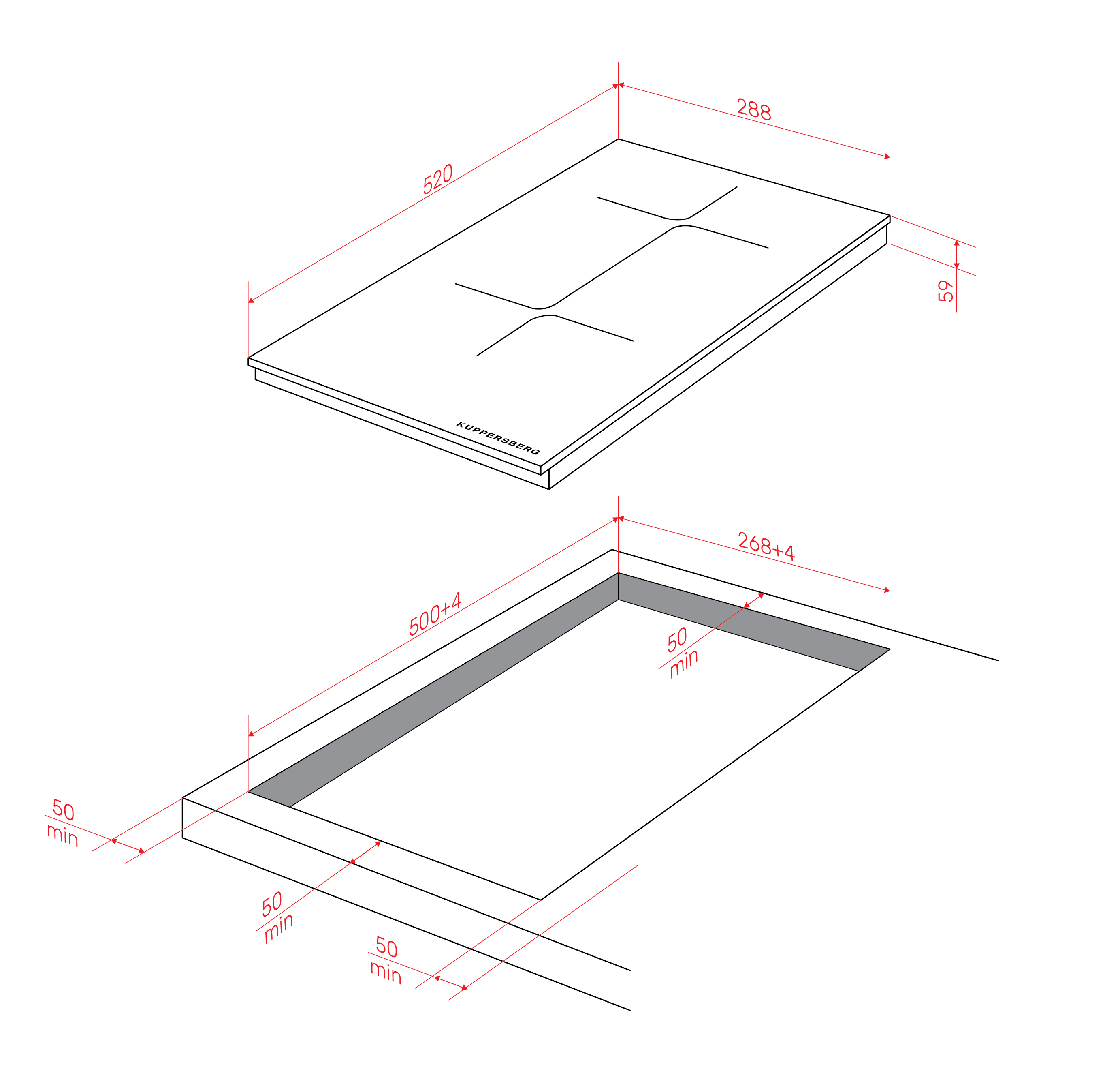 - Recess size for embedding (WxD), mm 268х500