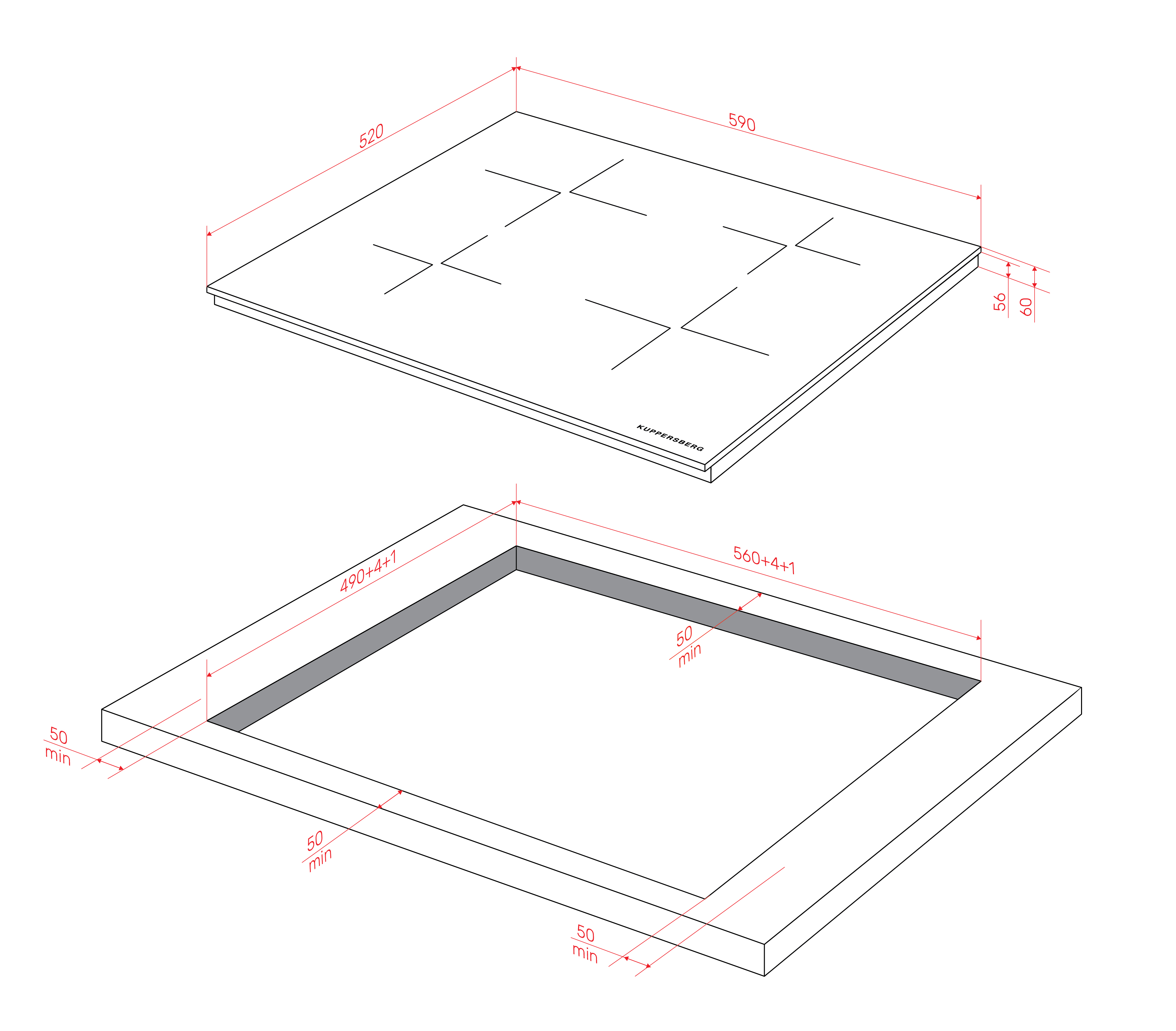 - Recess size for embedding (WxD), mm 560x490