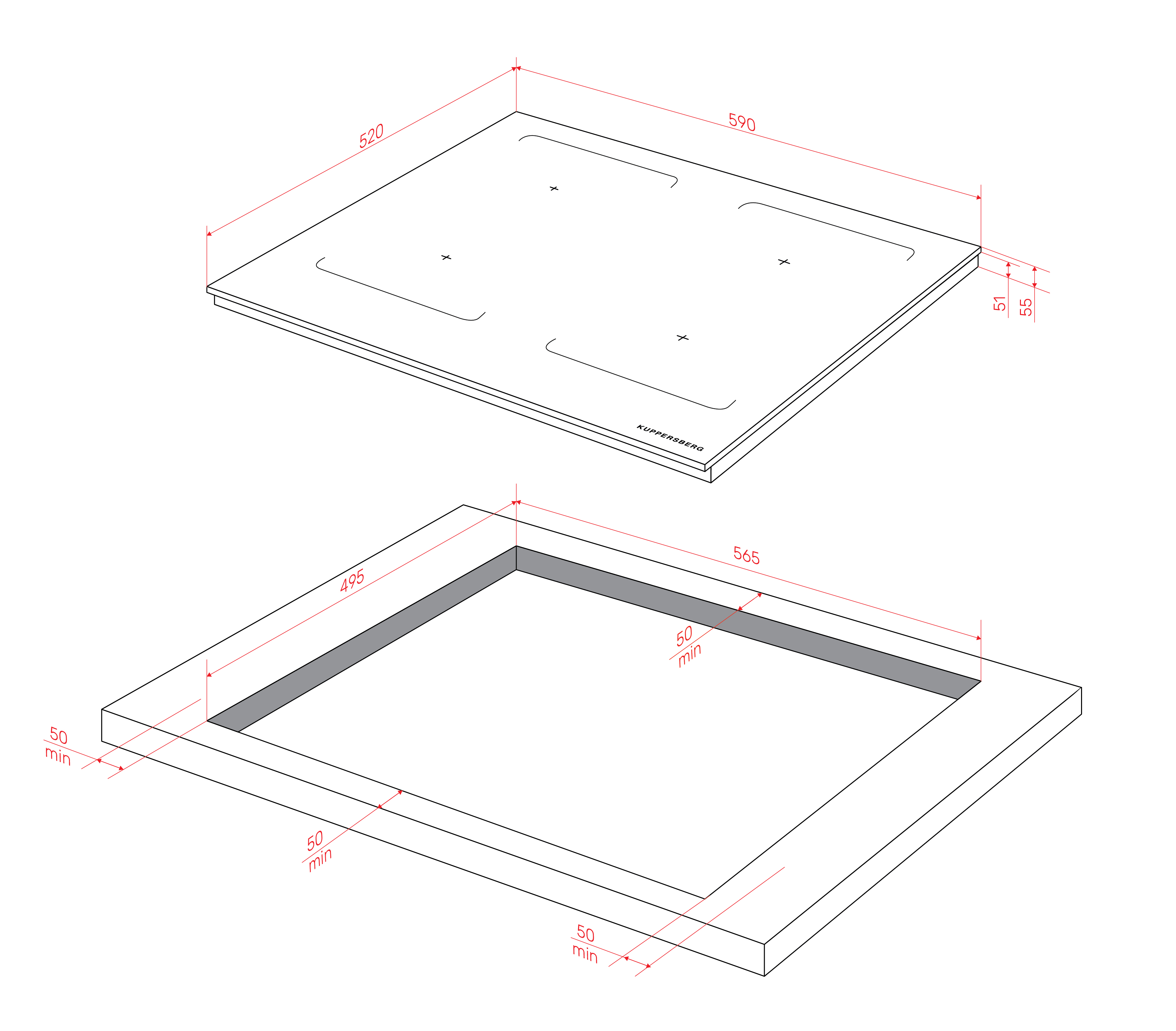 - Burner power, kW: rear left 2,0 кВт / 2.8 кВт