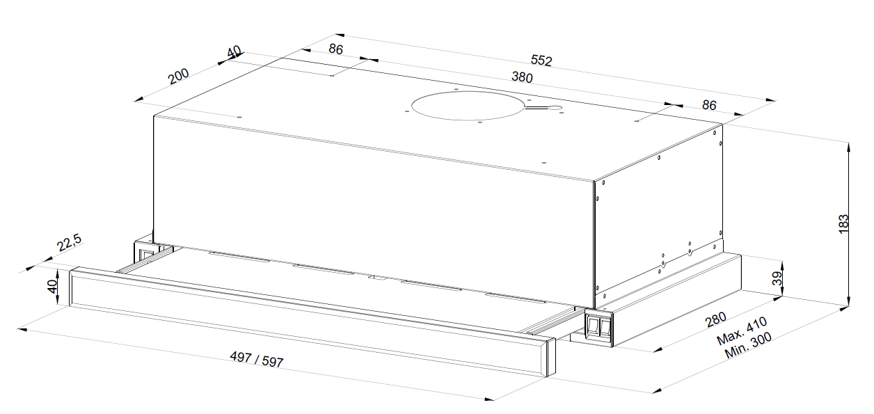 Телескопическая вытяжка встраиваемая SLIMLUX 60 B