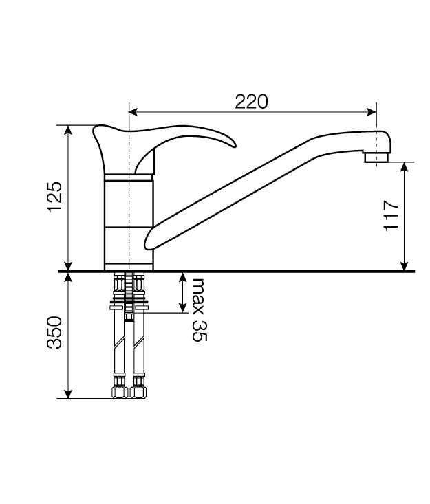 - Высота смесителя, см 12.5